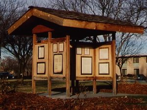 | Objects venerated in shrines need not be ancient or religious. What is most important is that they remind us of our past and the objects or ideas that we hold to be important. In public parks, schools, and libraries around the country, we have placed "Freedom shrines" which contain reproductions of the Declaration of Independence, the Constitution of the United States, the Bill of Rights and other documents important to American freedoms. These shrines don't actually venerate the documents themselves, but rather venerate and preserve the ideas contained within them. If we had rolled these documents up and placed them in a jeweled box, their significance would have been lost. |