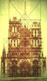 During the Middle Ages, builders designed cathedrals combining idea of the "New Jerusalem," or city of heaven, as described in the Book of Revelation, and the idea of Noah's Ark. The word "nave" which is used to describe the central space of the sanctuary, comes from the same Latin word as our word "navy" and suggests the cathedral was an ark or ship for transporting souls to heaven. |
